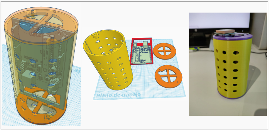This 3D design of the CANSAT body has been designed at the Club Robótica Granada with the Tinkercad tool. The design is intended to leave as much space inside as possible, housing the ESP32 STEAMakers board with the corresponding sensors and peripherals.