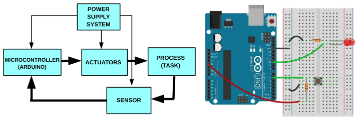 - Input elements: they will be sensors that can be connected to our control system, they can be: pushbuttons, switches, limit switches, ntc, ldr, accelerometers, gyroscopes, barometers, gps, etc.