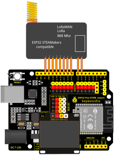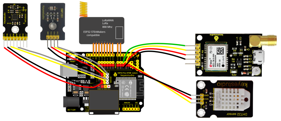 Mount the transmitter, which consists of an ESP32 STEAMaker with LoRa module, OLED display, BMP280 sensor, MPU6050 sensor, DHT22 sensor and GPS, and the receiver, which consists of an ESP32 STEAMaker with LoRa module.