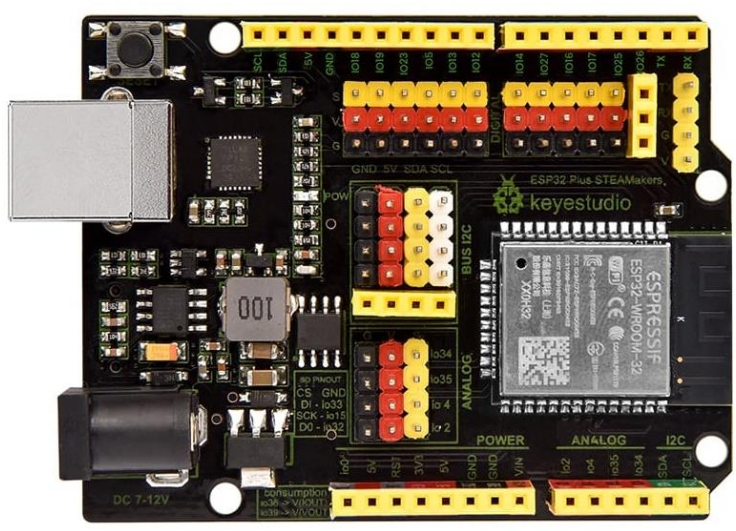 Controller ESP32 SteaMakers manufactured by keyestudio, with an arduino form factor and accessories such as pin header, microSD, integrated power sensors, programmable with arduinoblocks and with extensive documentation available. Two will be used, one as a transmitter (on the satellite) and one as a receiver on the ground computer. |